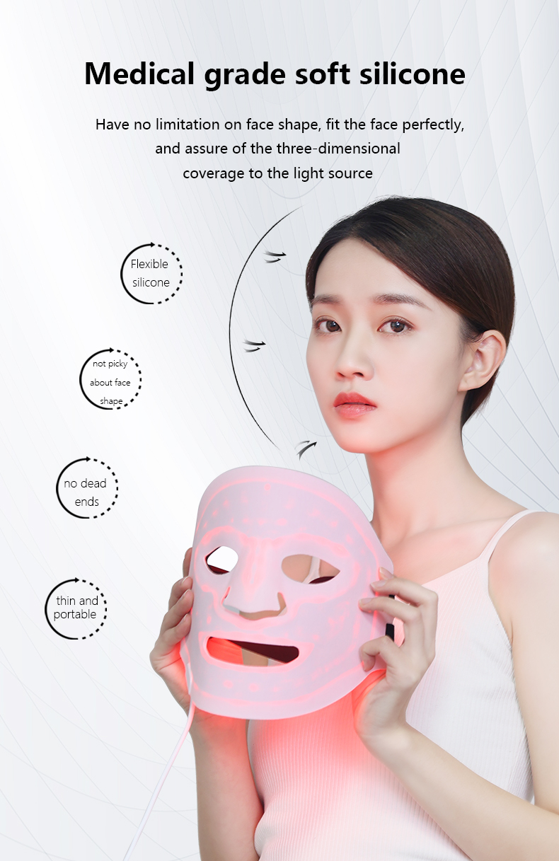 Die NEWDERMO-Schönheitsmaske basiert auf diesem Prinzip und verwendet sowohl ROTE LED- als auch IR2-Wellenlängen, um zusammenzuarbeiten, um die subkutane Kollagenproduktion durch unterschiedliche spektrale Bestrahlung zu fördern, wodurch die Hautzellen selbst Veränderungen vornehmen, wodurch die Hautelastizität verbessert und die Gesichtshaut gestrafft wird.